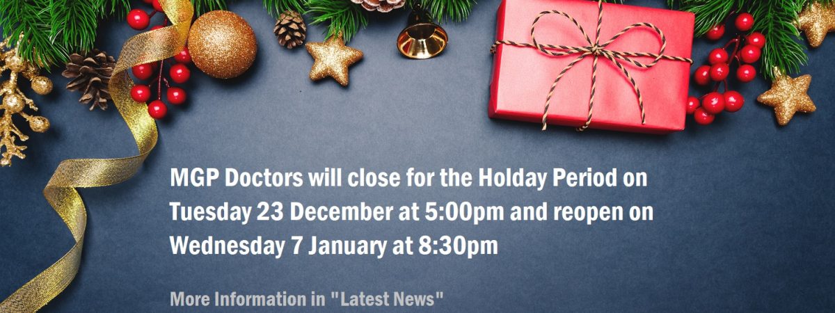 Meadowbank General Practice will close for the holiday period on Tuesday 23 December @ 5.00pm reopening Wednesday 7 January @ 8.30am If you are an enrolled patient with this practice and need healthcare when we are closed, please call our usual practice phone number – 521 5128 to be directed